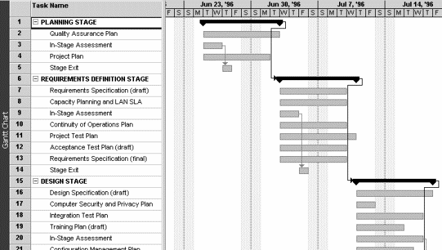 - Gantt charts (Microsoft Project)